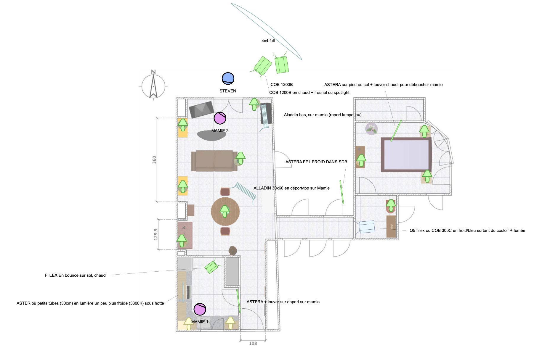 Associés à un Kit « magique » de miroirs CRLS, L’Evoke 1200B ainsi que le 900C ont été utilisés pour contrôler et parfois recréer la lumière du jour sur la séquence intérieur/extérieur entre Mamie et Steven le kiné. Le 900C quant à lui, a permis d’insuffler une ambiance mortuaire, filtrant à travers les volets et rideaux de la chambre de Papy et Mamie. Ces sources ont été choisies pour leur puissance, flexibilité (pas d’utilisation de gélatines) et pour le 900C, son rendu précis des couleurs. Le décor étant une maison prêtée par un particulier, et le temps de tournage court, la polyvalence de ces sources LED a été un choix naturel pour ce tournage.